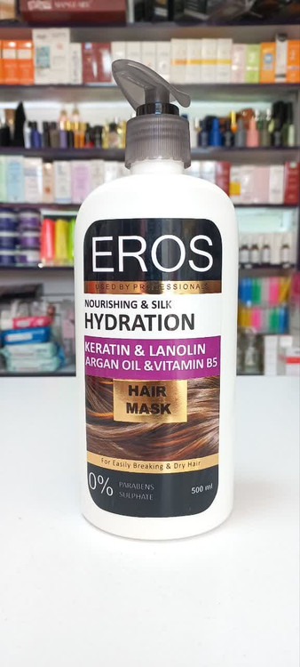ماسک مو آبرسان فری سولفات ایروس یک ماسک فوق العاده قوی برای موهای خشک است. ایروس حاوی ترکیبات موثر کراتین، روغن آرگان، لانولین و ویتامین B5 می باشد. همچنین حاوی عصاره آلوئه ورا جهت آبرسانی قوی مو که احیاکننده ساقه مو خشک و دهیدراته می باشد.