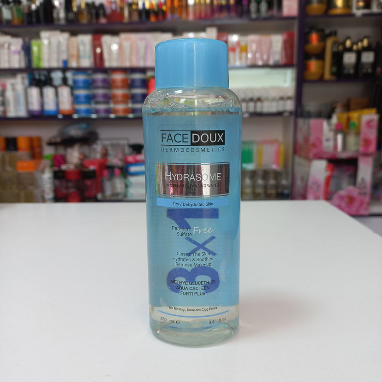 محلول پاک کننده آرایش هیدرازوم فیس دوکس مناسب پوست خشک است. این محصول حاوی مواد پروبیوتیک جهت حفظ فلور طبیعی است و حساسیتی برای پوست ایجاد نمیکند. محلول پاک کننده آرایش فیس دوکس دارای PH فیزیولوژیک بوده و برخلاف شویندههای صابونی، PH پوست را قلیایی نمیکند. این میسلار واتر منافذ پوست را از باقیمانده آرایش، گرد و غبار و چربیهای اضافه و آلودگیهای محیطی پاک کرده و پوست را نرم و لطیف میکند. خوشبختانه این محصول فاقد مواد مضر شیمیایی همچون پارابن و سولفات است. چراکه این مواد خطر ابتلا به سرطان پوست را افزایش داده و باعث بروز آلرژی و حساسیت میشوند.