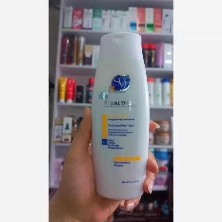 شامپو تقویت کننده و ضد شوره اس وی آی حاوی بیوتین، کافئین، عصاره برگ رزماری و سائوپالمتو افزایشدهنده جریان خون مویرگی در پوست سر تقویت و تغذیه موهای ضعیف کمک به درمان شوره سر تحریک رشد مو درمان خارش ضد التهاب ضد ریزش حجم 200 میل