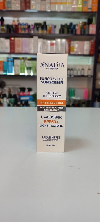 ضد آفتاب فلوئدی آنادیا نیز محصولی مایع، بر پایه آب با بافتی سبک است که غلظت زیادی ندارد و برای آب و هوای مرطوب و گرم بسیار مناسب است. این محصول خیلی سریع جذب پوست میشود، از مسدود شدن منافذ پوست جلوگیری میکند و همزمان یک محافظ قوی برای پوست در برابر آفتاب سوختگی، ایجاد لک و پیری زودرس میشود مناسب برای دور چشم.